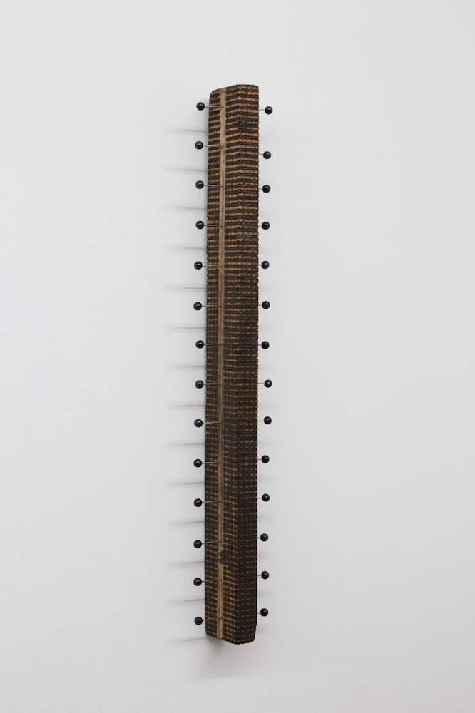1947年イギリス・ロンドン生まれ、2014年没。手持ちの虫眼鏡で太陽光を集光し、木片の表面を焦がして線を刻む独自の手法で知られる。海岸などで拾い集めた漂流木や日常的な木製品に繰り返し焼き跡を刻むことで、時間と自然の作用、そして自然と人間の関係を表すような静謐な作品を制作した。